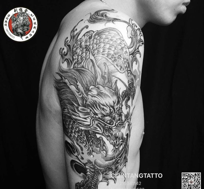 • T网红王老大花腿龙纹身图片_腿部新传统纹身图案