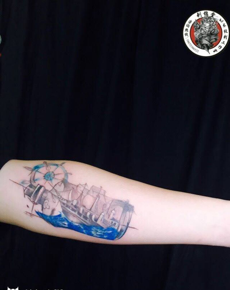 武汉纹身#刺锦堂纹身#今日作品更新 乘风破浪(遮盖)纹身图片