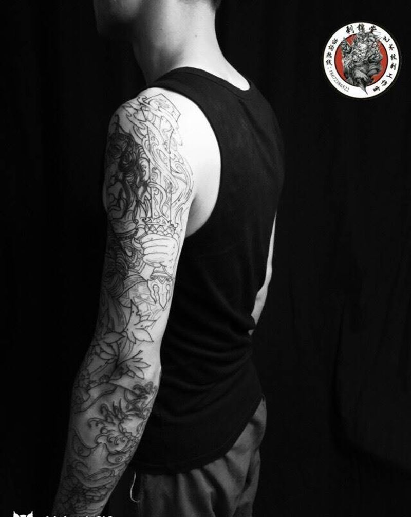 当前位置: 首页 >湖北省武汉市纹身店-刺锦堂纹身纹身图案>武汉纹身#刺锦堂纹身#不动明王花臂进度中(遮盖)纹身图片