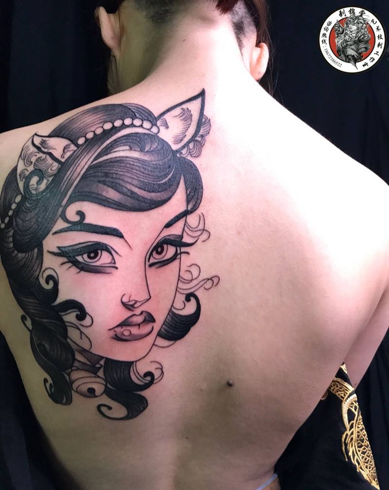 黑灰满背纹身图案