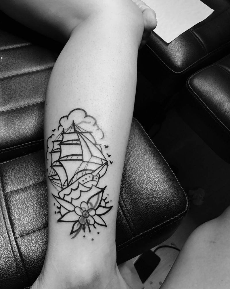 • T网红王老大花腿龙纹身图片_腿部新传统纹身图案