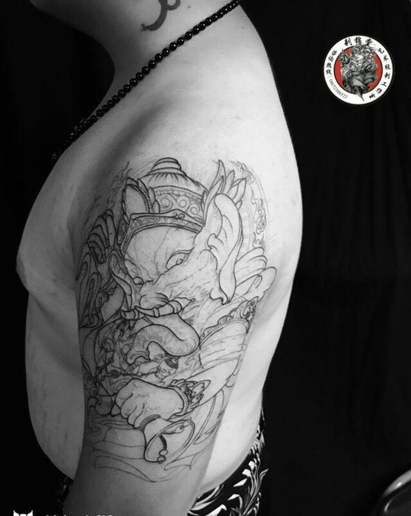 当前位置: 首页 >湖北省武汉市纹身店-刺锦堂纹身纹身图案>今日作品更新:象神线条完成…纹身图片