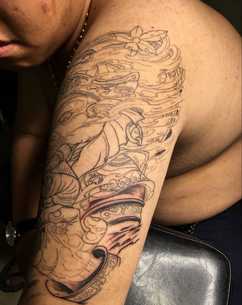 • 纹身吧推荐的披肩图腾半胛纹身图案作品展示