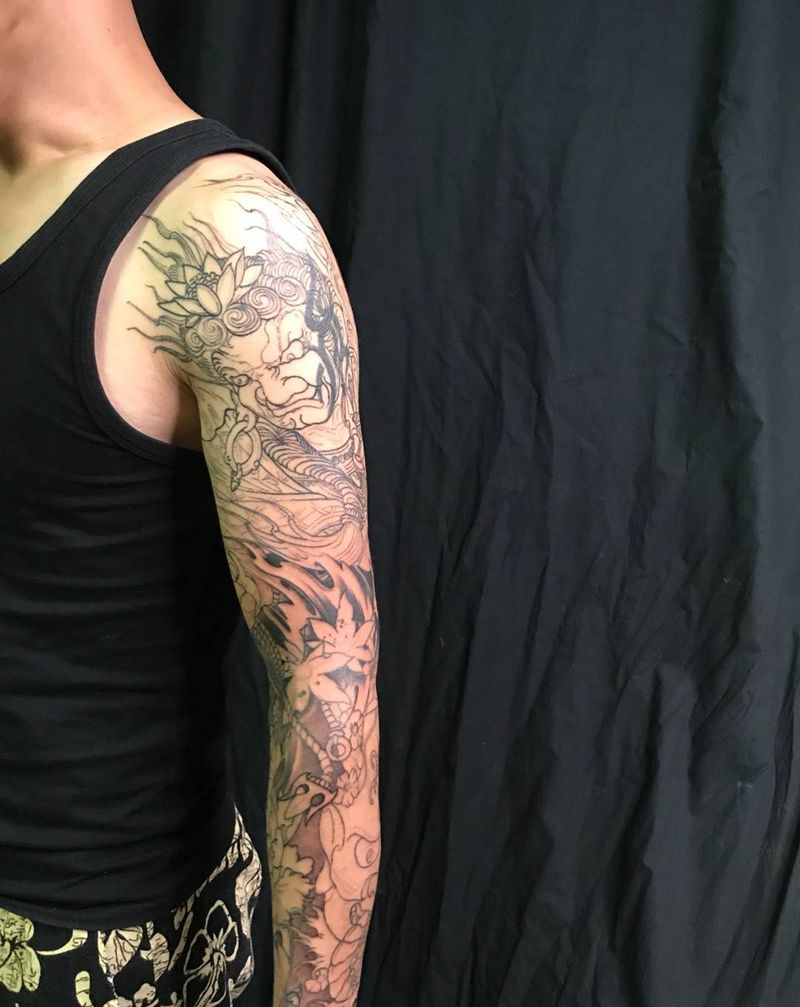 武汉纹身#刺锦堂纹身#今日作品更新 花臂背景雾进度中纹身图片