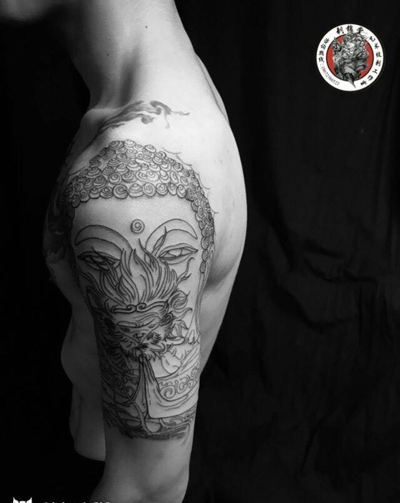 今日作品更新:大圣 线条纹身图片