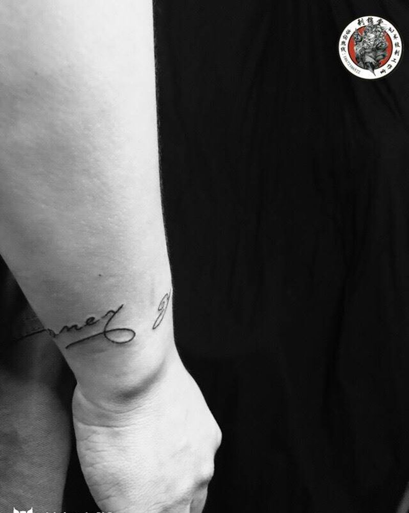 当前位置: 首页 >湖北省武汉市纹身店-刺锦堂纹身纹身图案>刺锦堂纹身#今日作品更新#花体英文手环#纹身图片