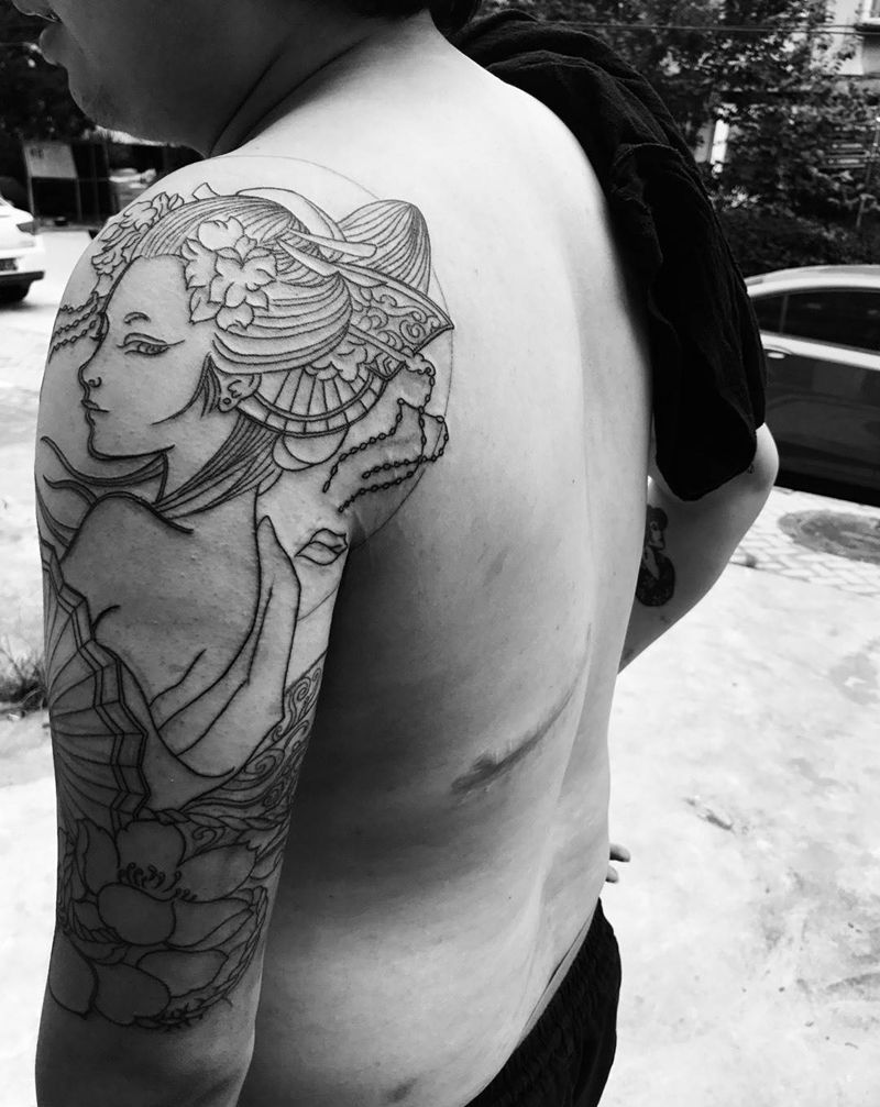 • 纹身吧推荐的披肩图腾半胛纹身图案作品展示