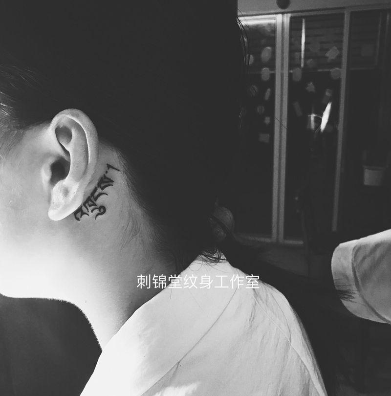当前位置: 首页 >湖北省武汉市纹身店-刺锦堂纹身纹身图案>耳后藏文字体纹身图片