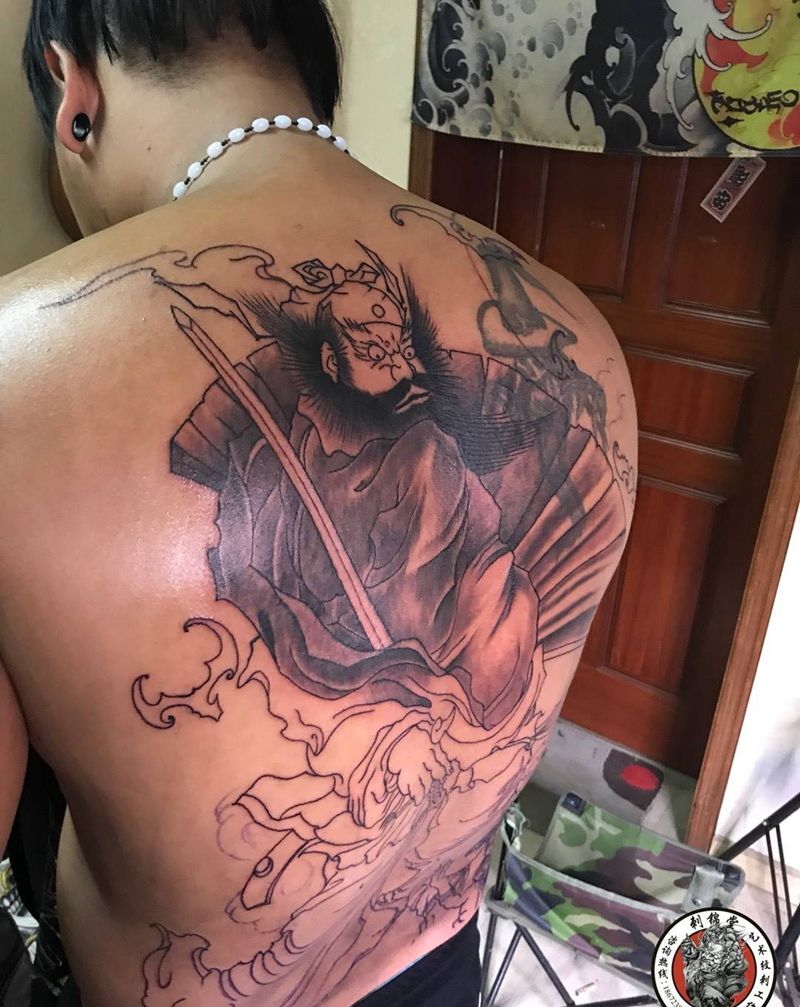 • H霸气全彩满背钟馗纹身图案