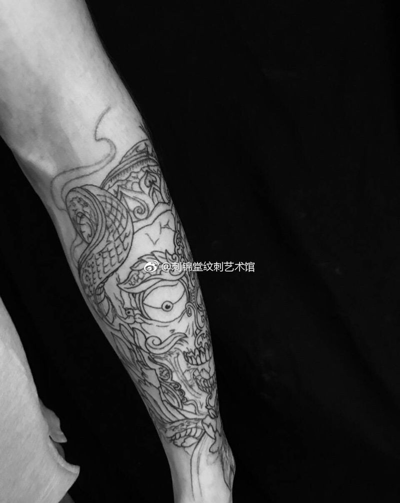今日作品:小臂嘎巴拉 线条完成#武汉·武汉刺锦堂纹身工作室[地点]#纹身图片