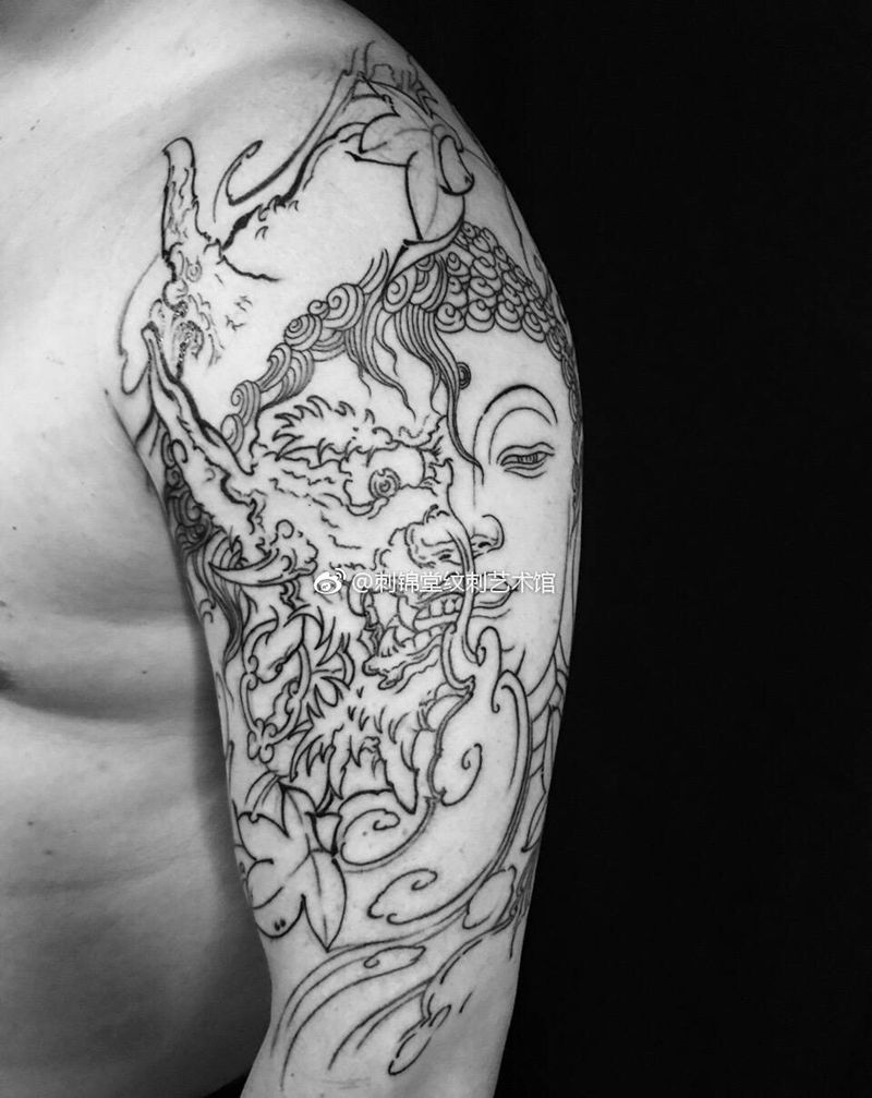 今日作品更新#善恶一念之间# 线条完成…#纹身参考#纹身图片