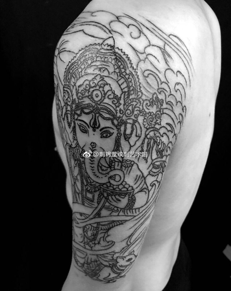 当前位置: 首页 >湖北省武汉市纹身店-刺锦堂纹身纹身图案>线条进度70%,2018第一个设计作品:8背象神。纹身图片