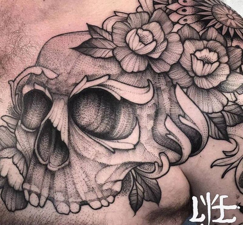 • 女性大花胸纹身_43张霸气漂亮的女性大花胸纹身图案作品