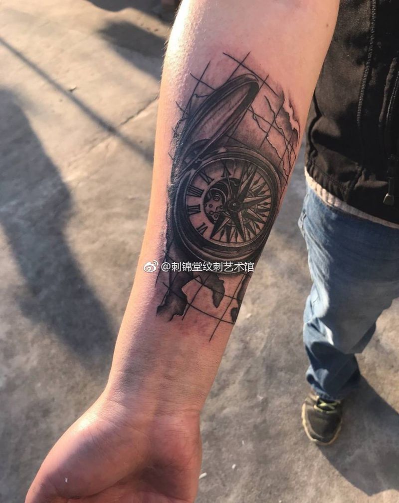 今日作品更新:让我做你的方向盘系列 #指南针纹身# #欧美纹身#纹身图片