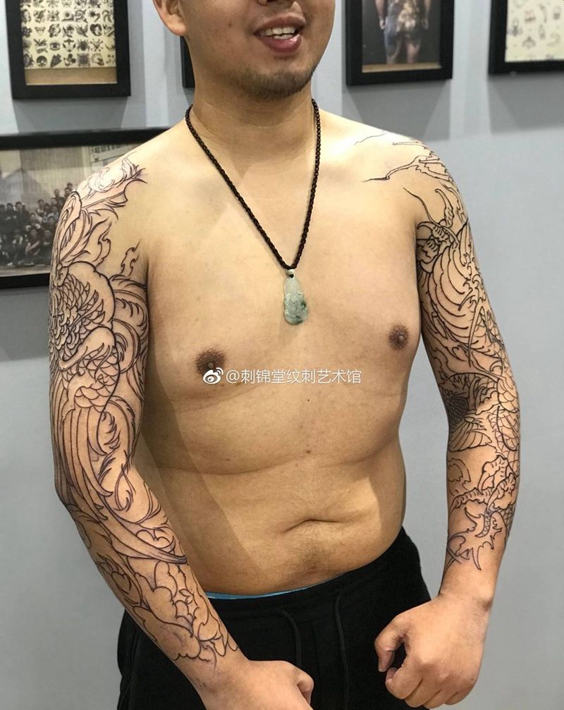 当前位置: 首页 >湖北省武汉市纹身店-刺锦堂纹身纹身图案>龙凤双花臂进度中纹身图片