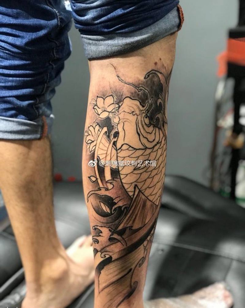 当前位置: 首页 >湖北省武汉市纹身店-刺锦堂纹身纹身图案>2018.3.13 小腿鲤鱼黑灰(未完成)纹身图片