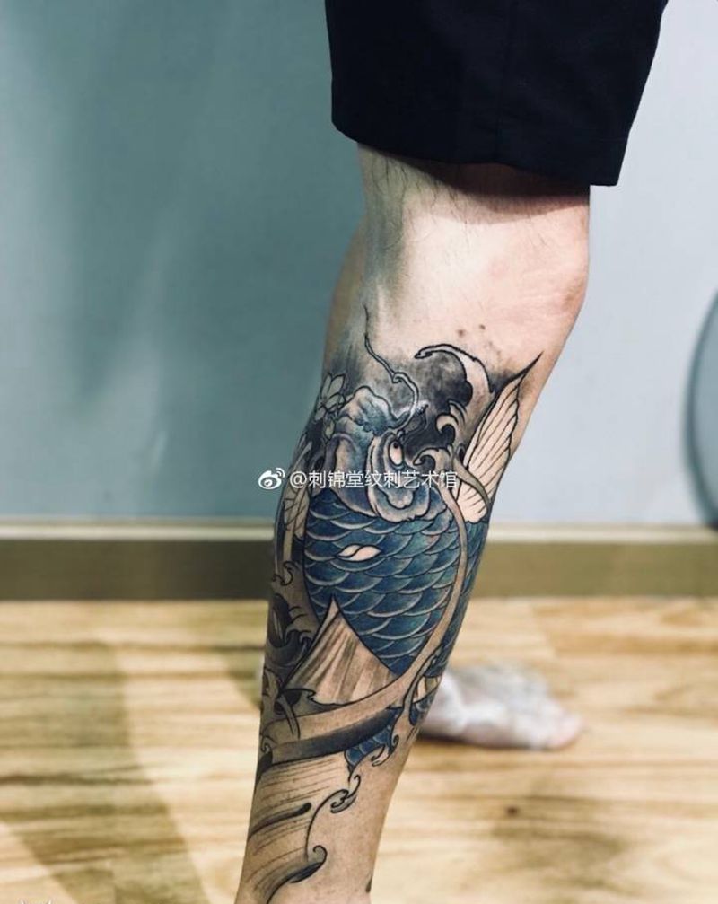 • T网红王老大花腿龙纹身图片_腿部新传统纹身图案