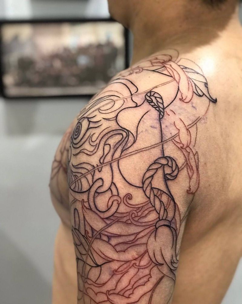 当前位置: 首页 >湖北省武汉市纹身店-刺锦堂纹身纹身图案>今日作品更新#半胛 #达摩 线条完成纹身图片