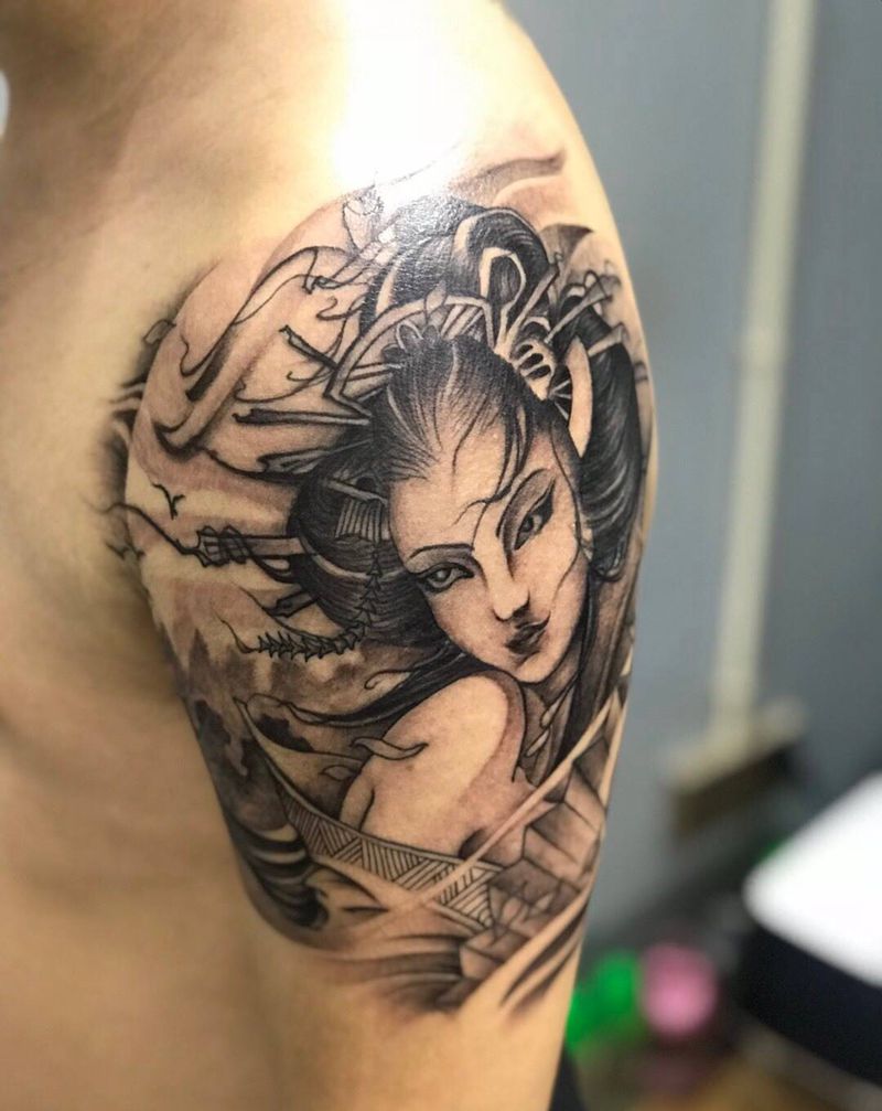 • 纹身吧推荐的披肩图腾半胛纹身图案作品展示