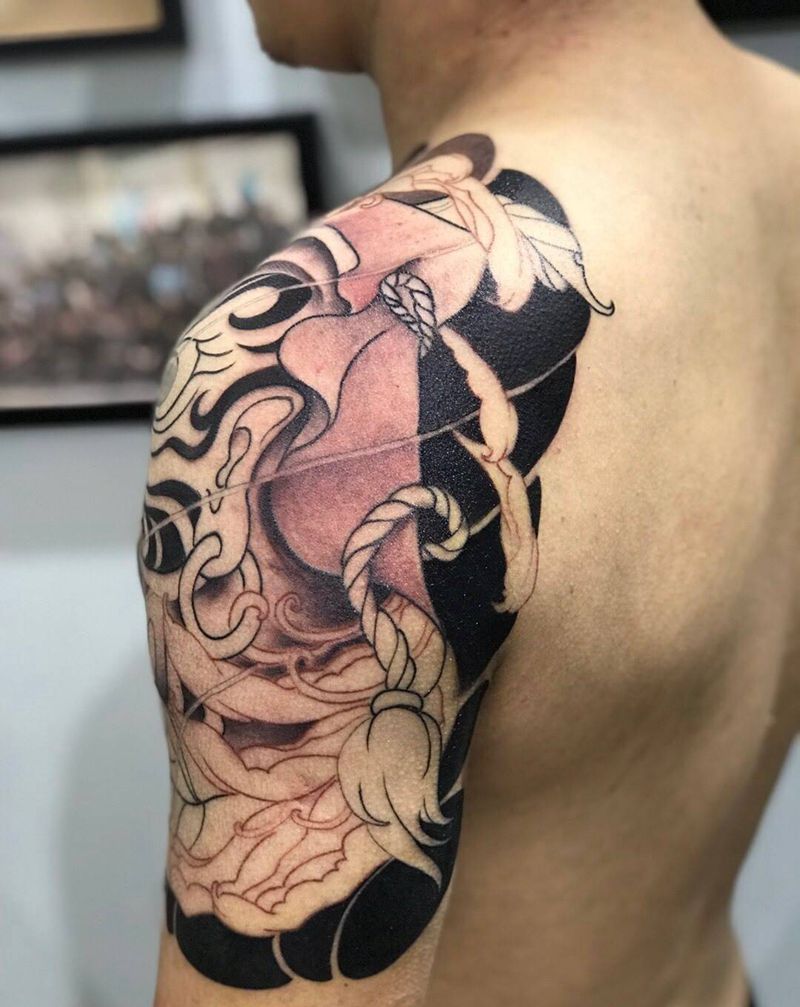 • 纹身吧推荐的披肩图腾半胛纹身图案作品展示
