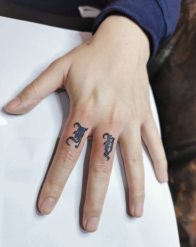 当前位置: 首页 >湖北省武汉市纹身店-释魂刺青纹身图案>小图纹身图片_手臂腿部花体字图腾纹身图案
