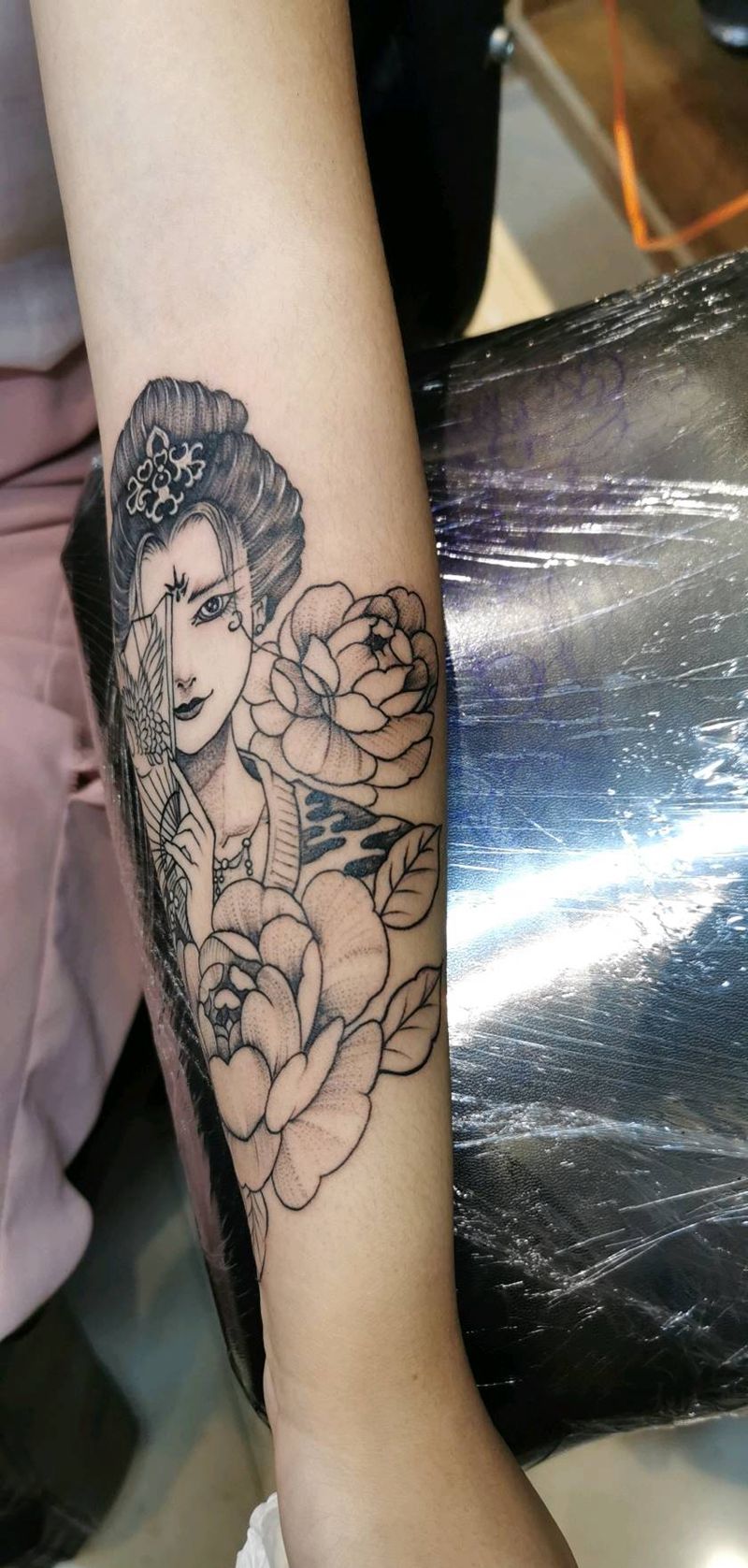 艺妓纹身图片_手臂新传统点刺纹身图案