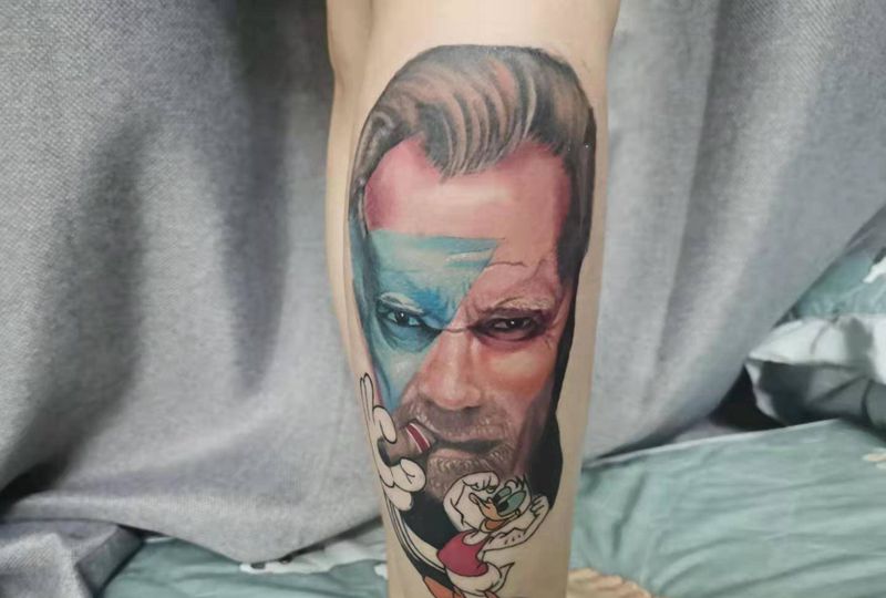 阿诺施瓦辛格(临摹作品)纹身图片_腿部欧美写实纹身图案