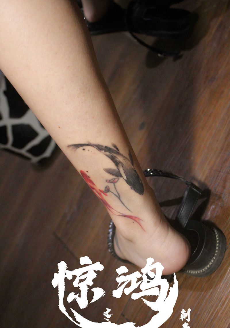 旧图添加纹身图片_腿部水墨纹身图案