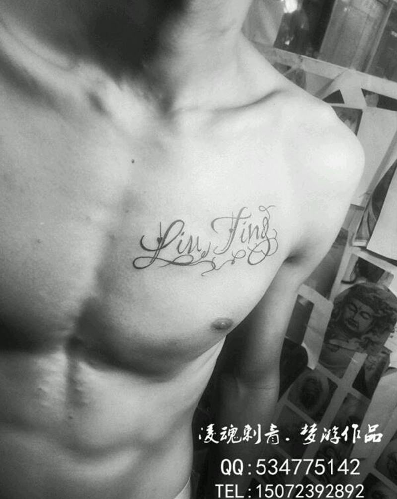 当前位置: 首页 >湖北省武汉市纹身店-武汉惊鸿刺青纹身图案>胸口花体英文纹身图片_胸部清新字符原创成品纹身图案