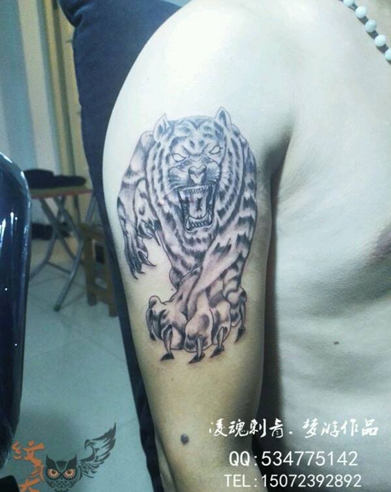 当前位置: 首页 >湖北省武汉市纹身店-武汉惊鸿刺青纹身图案>大臂猛虎纹身图片