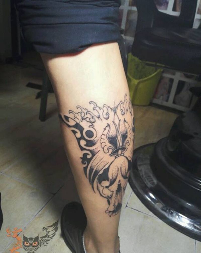 • T网红王老大花腿龙纹身图片_腿部新传统纹身图案