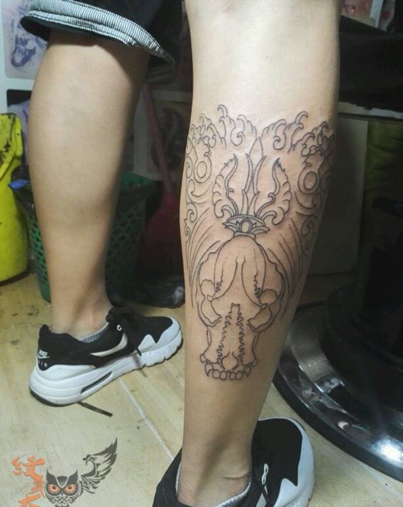 • T网红王老大花腿龙纹身图片_腿部新传统纹身图案