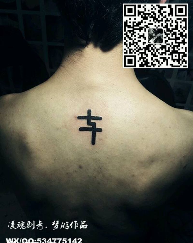 汉字-车纹身图片_背部清新字符成品纹身图案