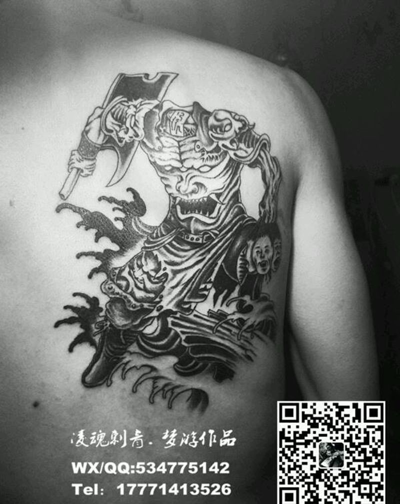 当前位置: 首页 >湖北省武汉市纹身店-武汉惊鸿刺青纹身图案>后背刑天纹身图片_背部传统人物鬼神成品纹身图案