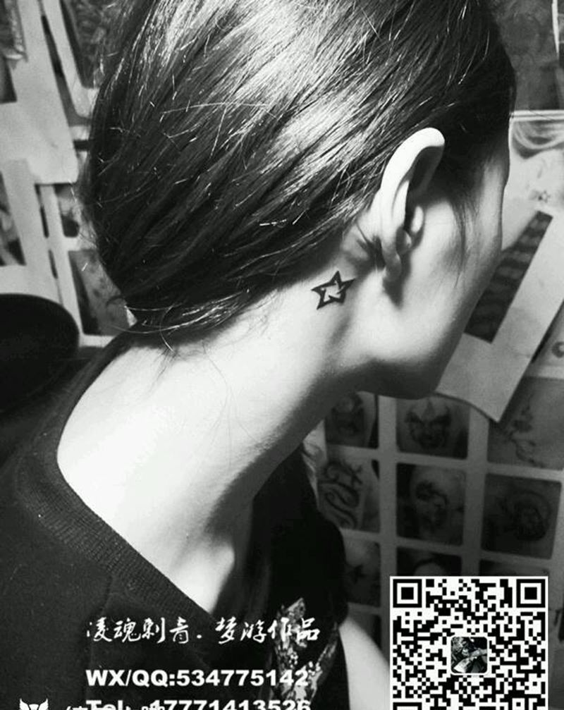 当前位置: 首页 >湖北省武汉市纹身店-武汉惊鸿刺青纹身图案>耳后星星⭐纹身图片_颈部清新几何字符成品纹身图案
