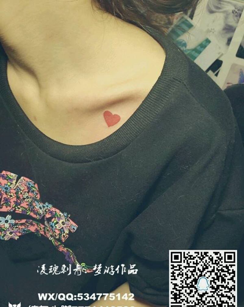 当前位置: 首页 >湖北省武汉市纹身店-武汉惊鸿刺青纹身图案>锁骨小爱心纹身图片_胸部清新几何字符成品纹身图案
