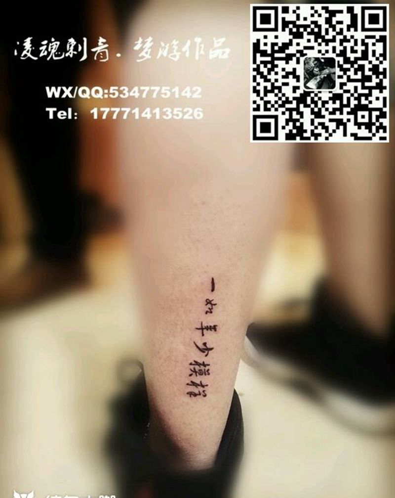 当前位置: 首页 >湖北省武汉市纹身店-武汉惊鸿刺青纹身图案>小腿汉字纹身图片_腿部传统习俗字符成品纹身图案