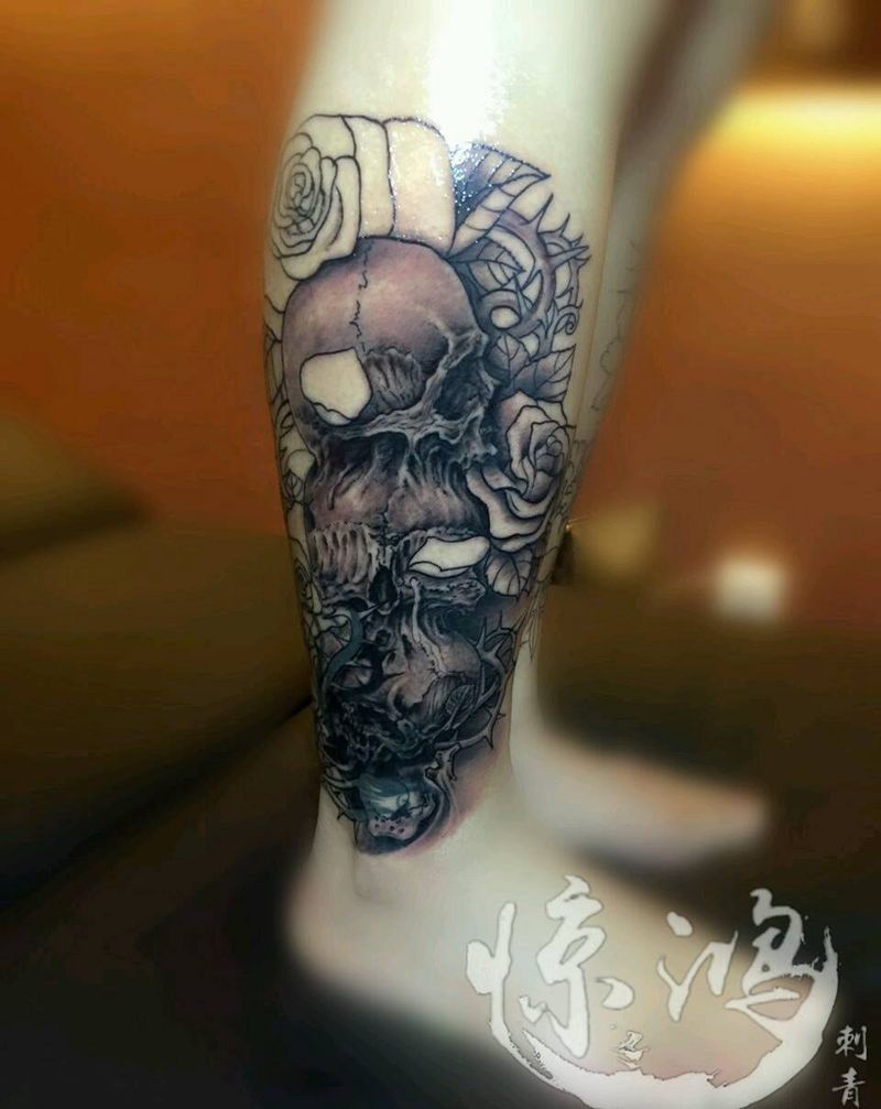 当前位置: 首页 >湖北省武汉市纹身店-武汉惊鸿刺青纹身图案>遮盖作品.未完成纹身图片_腿部欧美植物鬼神原创成品纹身图案