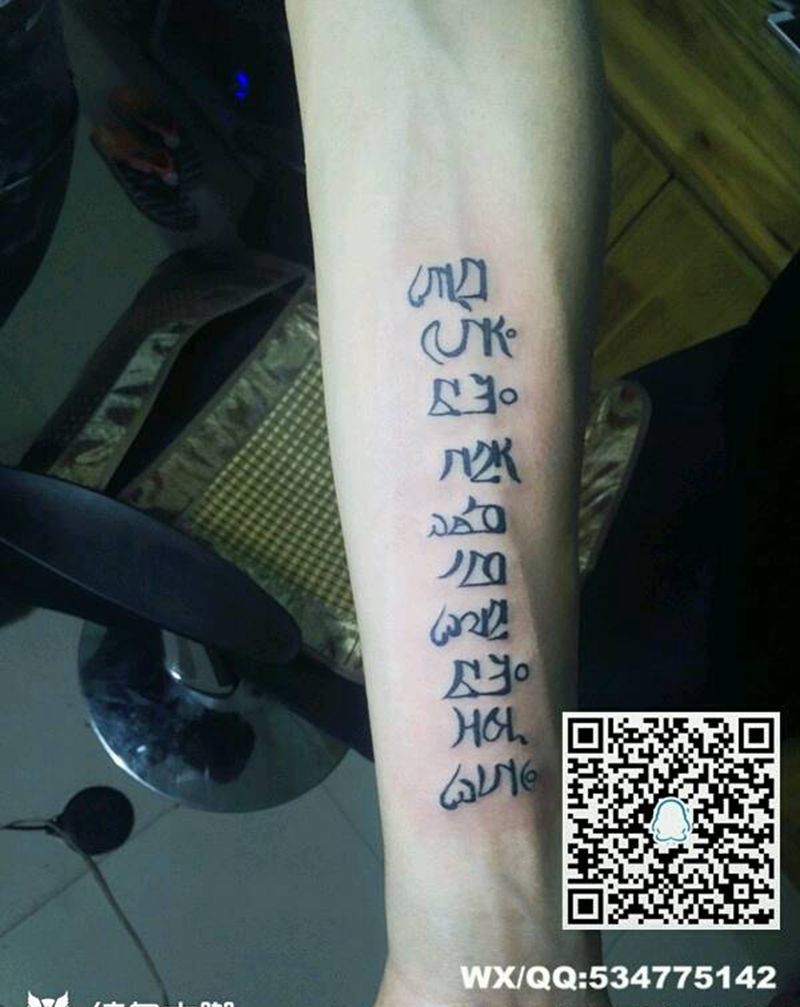 当前位置: 首页 >湖北省武汉市纹身店-武汉惊鸿刺青纹身图案>小臂梵文纹身图片_手臂清新字符成品纹身图案