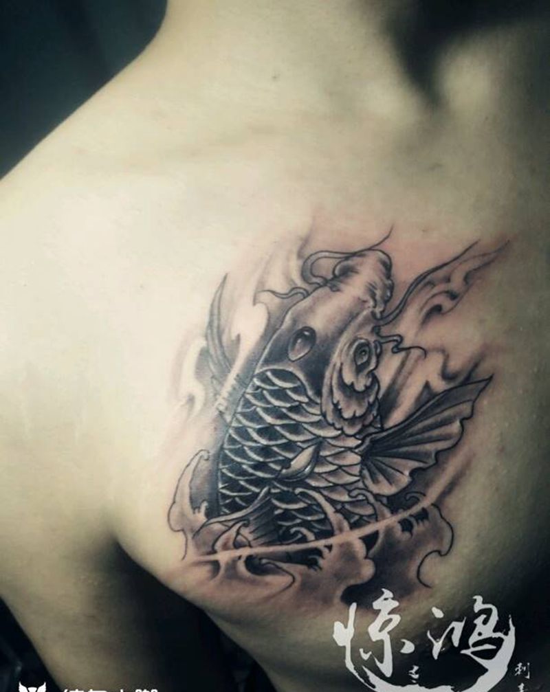 当前位置: 首页 >湖北省武汉市纹身店-武汉惊鸿刺青纹身图案>胸口锦鲤。纹身图片_胸部传统动物成品纹身图案
