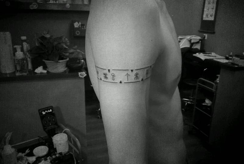当前位置: 首页 >湖北省武汉市纹身店-武汉惊鸿刺青纹身图案>设计臂环纹身图片_手臂清新几何字符成品纹身图案