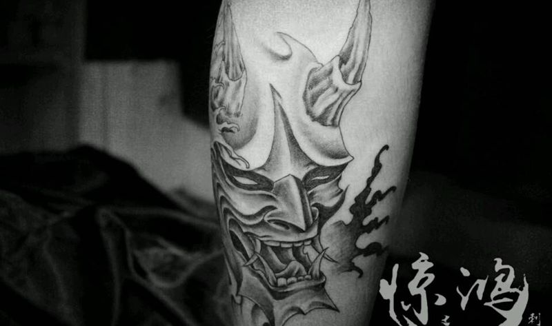 当前位置: 首页 >湖北省武汉市纹身店-武汉惊鸿刺青纹身图案>小腿般若纹身图片_腿部传统鬼神成品纹身图案