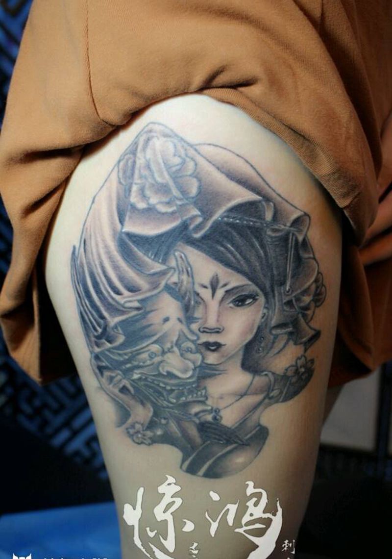 当前位置: 首页 >湖北省武汉市纹身店-武汉惊鸿刺青纹身图案>大腿艺妓纹身图片_成品纹身图案