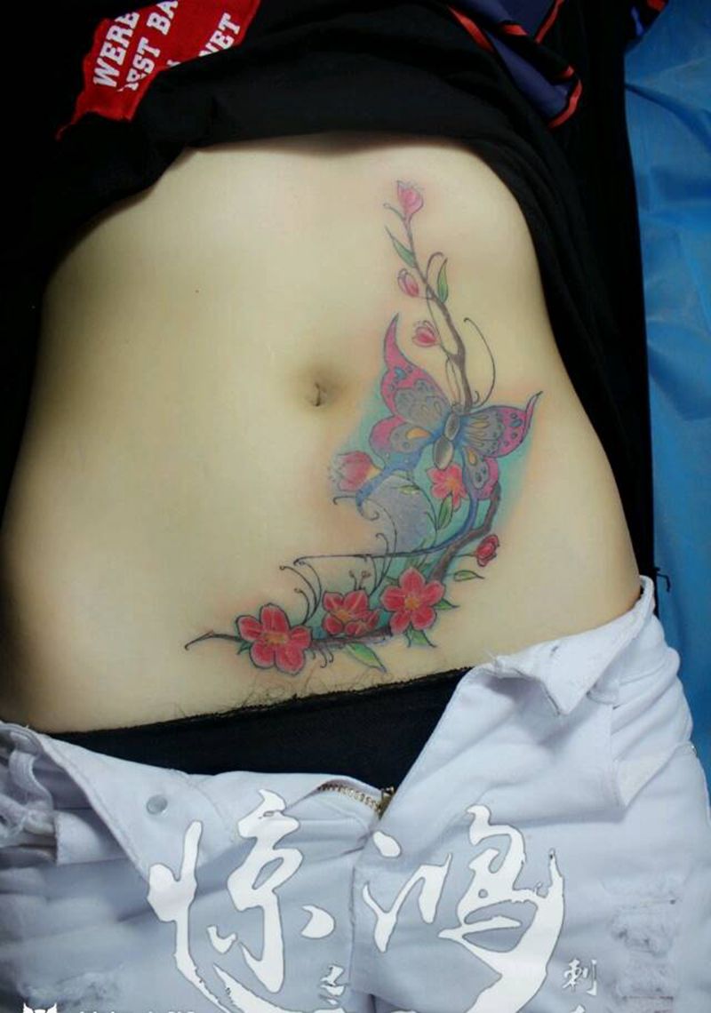 • T关于私处得爱!纹身图片_成品腹部清新字符图腾纹身图案