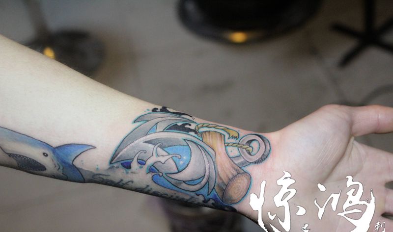 当前位置: 首页 >湖北省武汉市纹身店-武汉惊鸿刺青纹身图案>School 船锚 局部遮盖纹身图片_手臂New School纹身图案