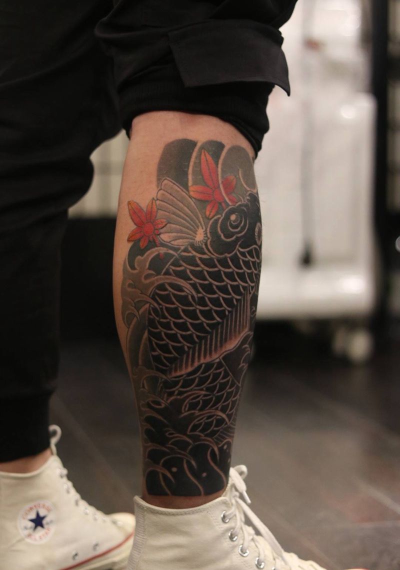 当前位置: 首页 >湖北省襄阳市纹身店-澜墨刺青纹身图案>小腿鲤鱼纹身图片