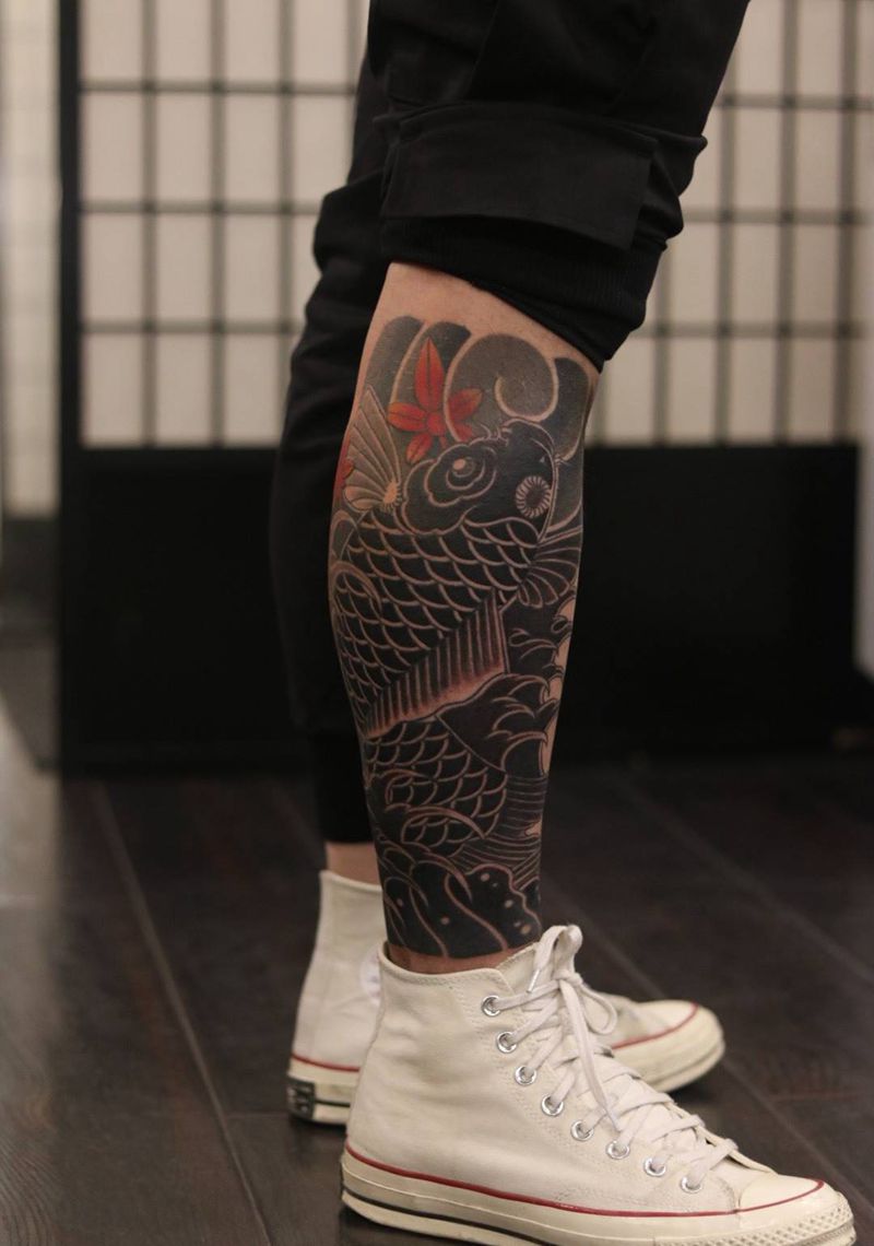 当前位置: 首页 >湖北省襄阳市纹身店-澜墨刺青纹身图案>小腿鲤鱼纹身图片