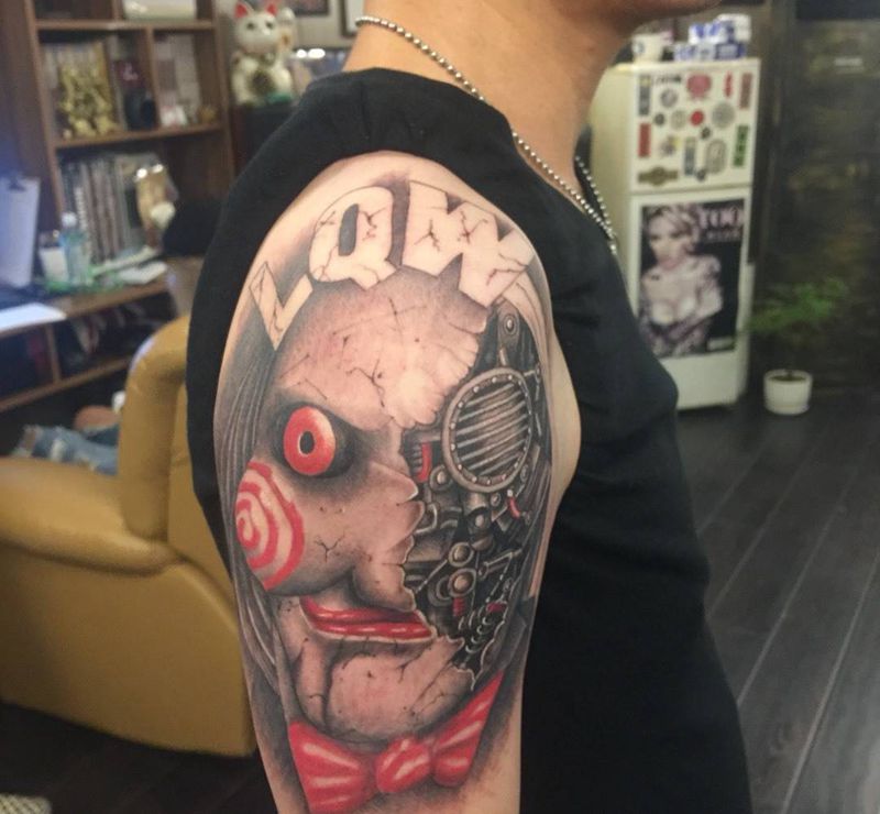 当前位置: 首页 >湖北省襄阳市纹身店-澜墨刺青纹身图案>电锯惊魂,纹身图片