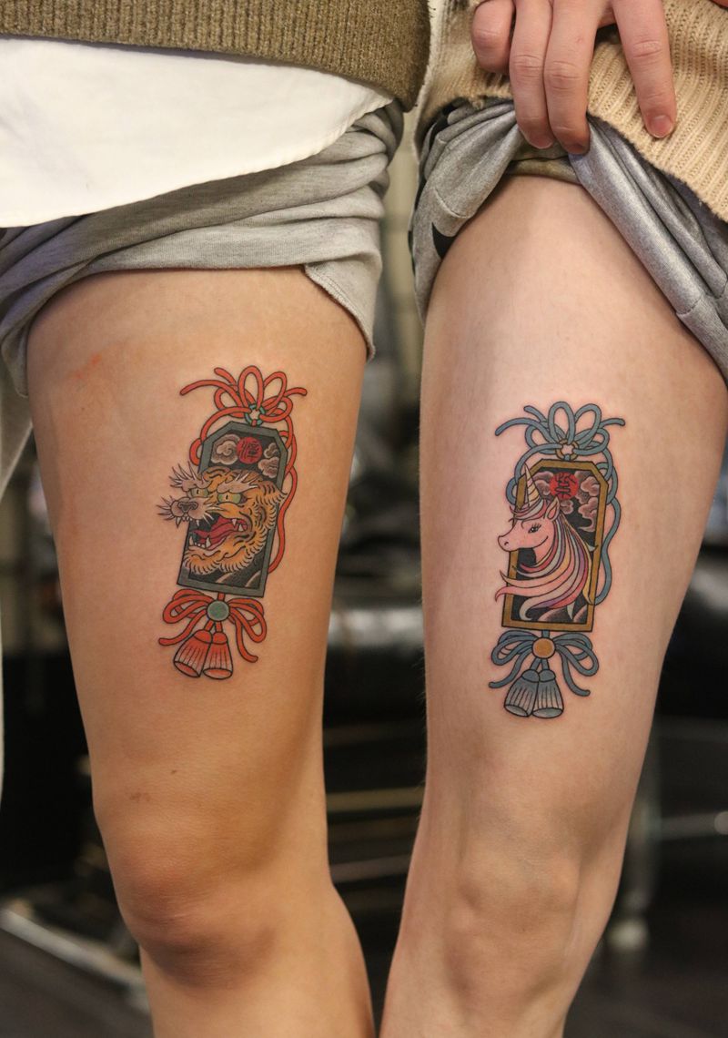 当前位置: 首页 >湖北省襄阳市纹身店-澜墨刺青纹身图案>御守纹身图片_腿部手臂老传统御守老虎独角兽纹身图案