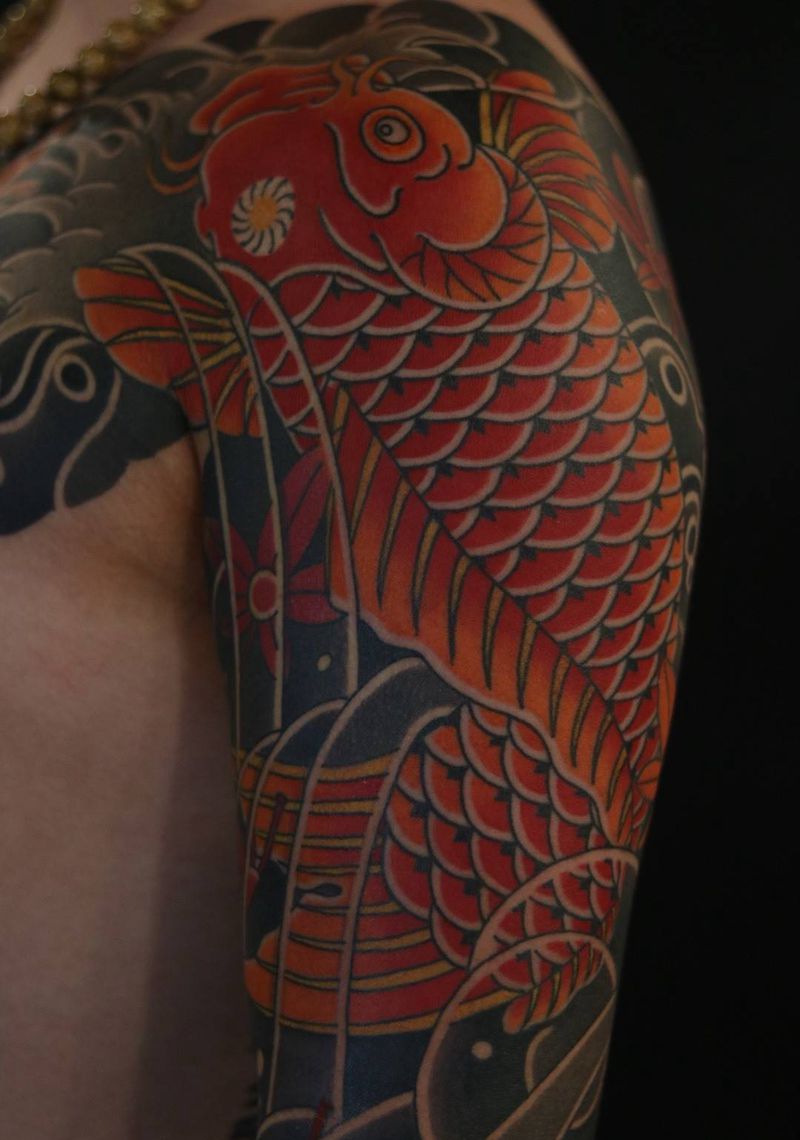 当前位置: 首页 >湖北省襄阳市纹身店-澜墨刺青纹身图案>鲤鱼七分纹身图片_手臂老传统纹身图案